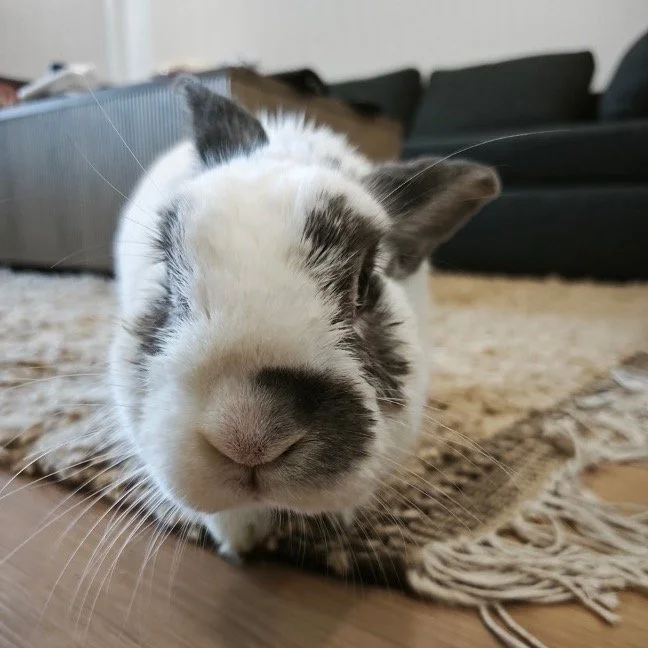 Before fostering Johnny, I had a home with two bonded bunnies with their own big personalities. Their names are Puppy Dog and (lovingly) Big Chungus. I knew from the moment I saw them that they would be my new babies. I love how Chungus bows for pets and is very animated with his emotions, and how Puppy Dog is purely driven by food. However, I only learned about their unique mannerisms after adopting the two. While my hunch about their personalities were on the nose, it may not be obvious until a pet has time to settle in, like little Johnny!