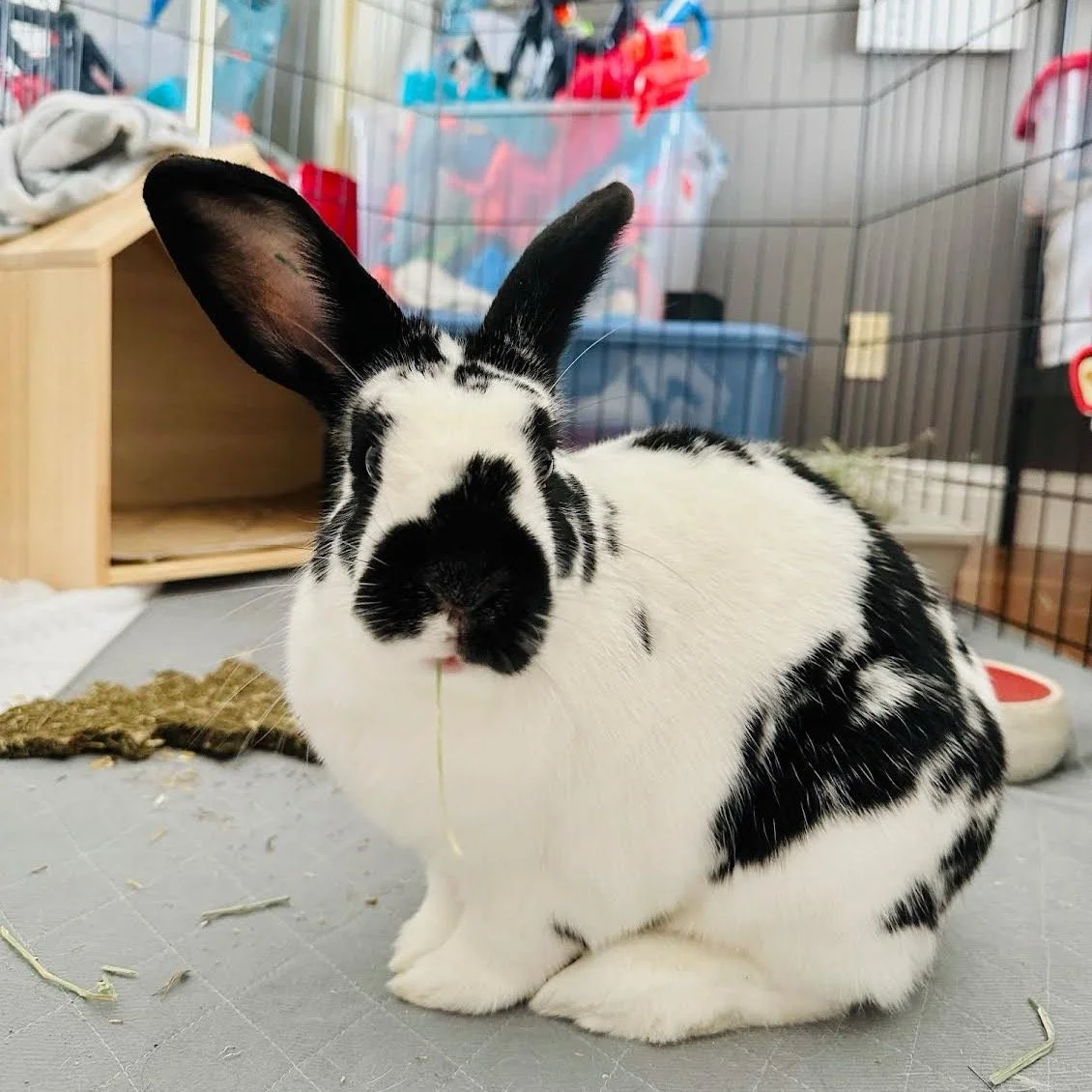 (left) Paulie is currently available for fostering or adoption through House Rabbit Society.